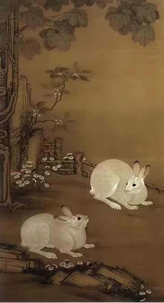 [清]冷枚《梧桐雙兔圖》。圖源:網絡