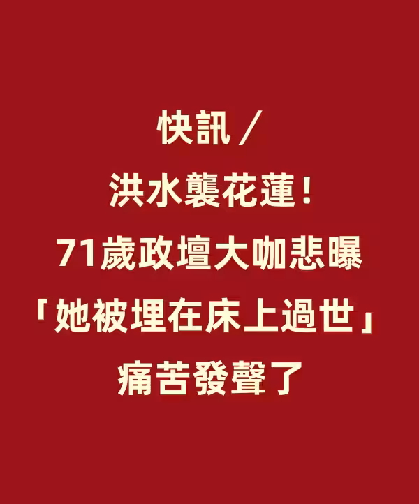 快訊/洪水襲花蓮!71歲政壇大咖悲曝「她被埋在床上過世」痛苦發聲了~