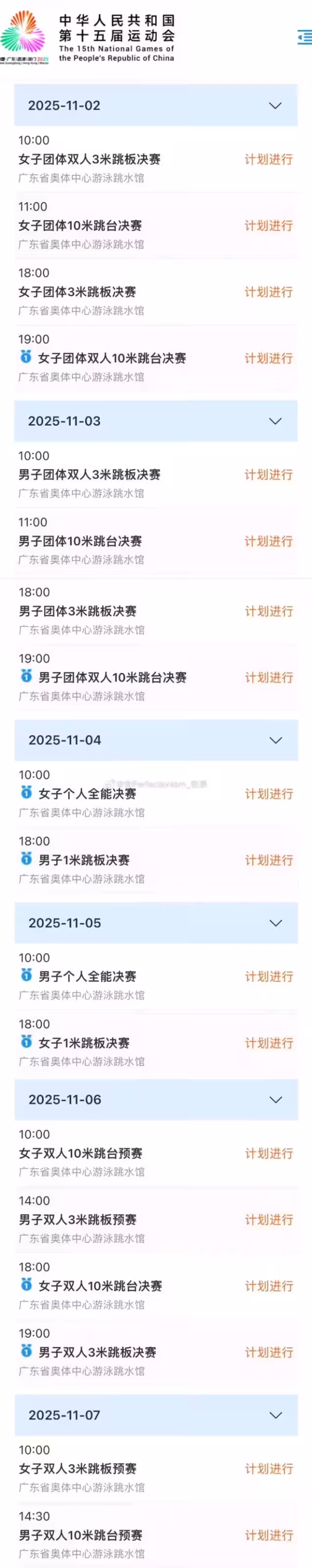 單人10米台賽程跨度三天:11月8日上午,預賽與半決賽連續進行,選手需在短時間內完成兩輪高強度對抗;11月10日19時30分,決賽將在廣東奧體中心游泳跳水館打響。作為該項目衛冕冠軍,全紅嬋若順利晉級,極有可能與國家隊隊友陳芋汐展開巔峰對決——兩人近三年國際賽事交手記錄中,全紅嬋以6勝3負略占優勢,但陳芋汐在2024年世界盃分站賽曾以2.1分微弱優勢逆轉奪冠,此番對決懸念重重。