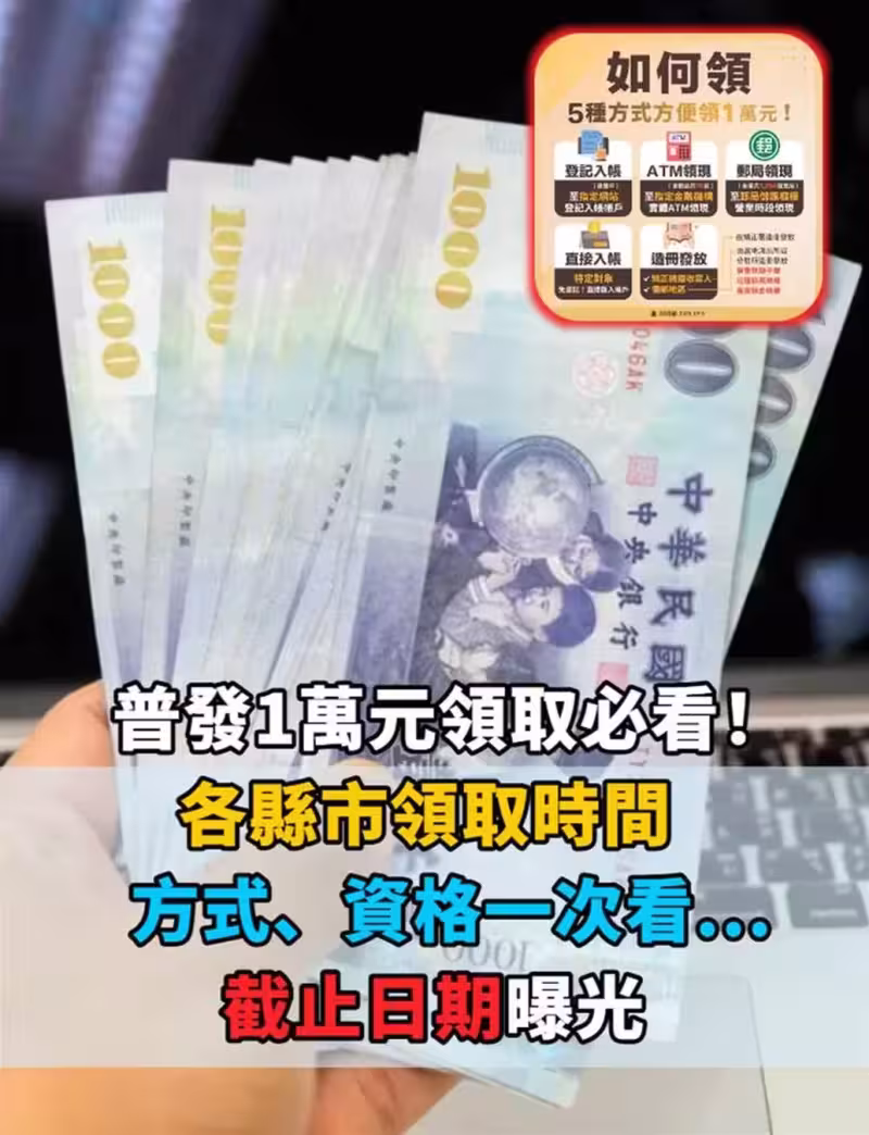 普發1萬元領取必看!各縣市領取時間、方式、資格一次看,截止日期曝光