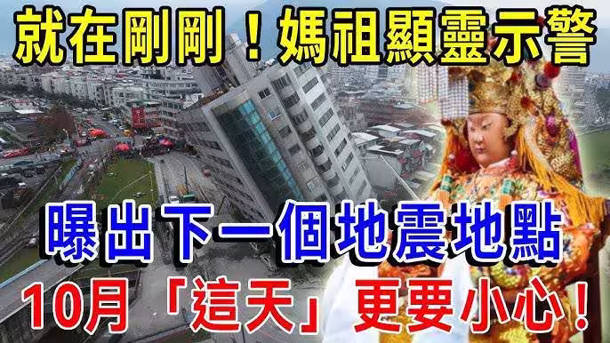 就在剛剛!媽祖顯靈發出緊急通知,下一個「大地震地點」 !10月「這天」更要小心!