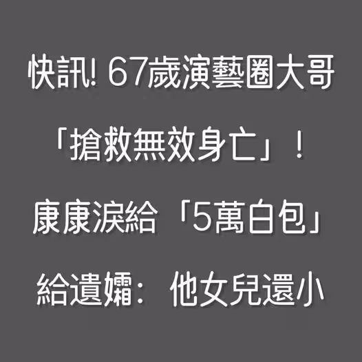 快訊/67歲演藝圈大哥「搶救無效身亡」! 康康「淚給5萬白包給遺孀」:他女兒還小