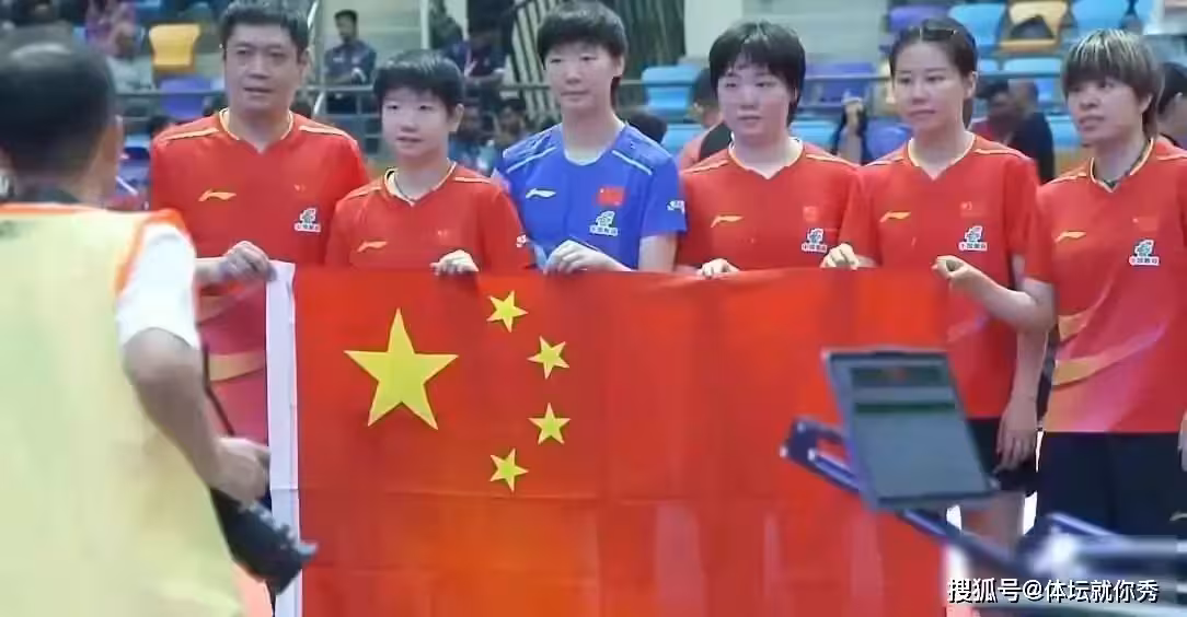 中國女乒3一0日本奪冠,三哥指揮拍出另類合影,王曼昱穿錯球衣