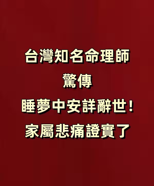 突發/台灣知名命理師驚傳睡夢中安詳辭世!家屬悲痛證實了