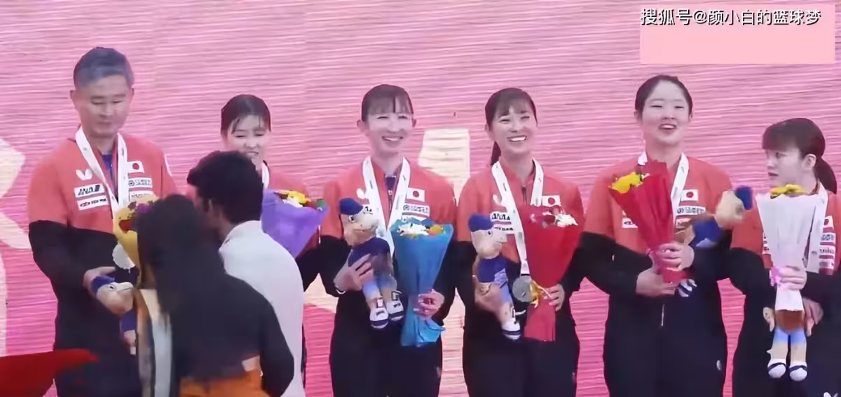 2025年桌球團體亞錦賽女團頒獎典禮上,亞軍獲得隊伍日本隊的多位球員都露出了笑容:張本美和、早田希娜、長崎美柚、大藤沙月、橋本帆乃香,感覺她們拿到一枚銀牌也挺開心的。