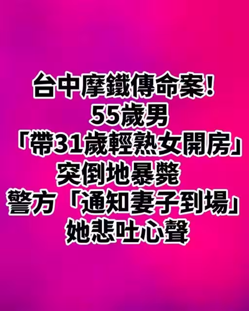 台中摩鐵傳命案!55歲男「帶31歲輕熟女開房」突倒地暴斃 警方「通知妻子到場」她悲吐心聲