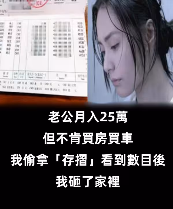 老公月入25萬但不肯買房買車,我偷拿「存摺」看到數目後,我砸了家裡