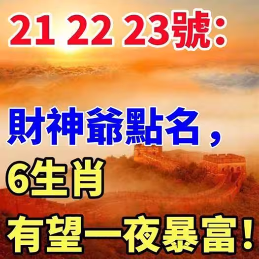 10月21 22 23號:財神爺點名6生肖,有望一夜暴富!