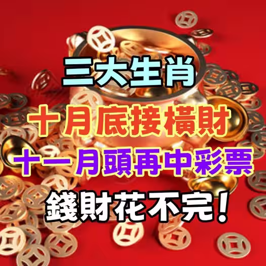 十月的尾聲到來,十二生肖中的三大幸運兒正悄然迎接他們橫財飆升的高峰期!這些生肖的朋友,將在十月底至十一月初迎來橫財爆發,簡直可以說是「天降橫財」,連空氣中都瀰漫著錢的香味。