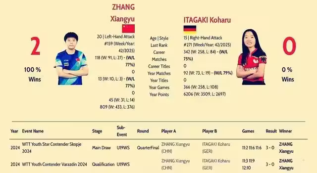 張翔宇與坂垣心春的比賽並非是陌生的遭遇戰,兩人在2024年有過兩次國際賽交手記錄,張翔宇2戰全勝,占據絕對上風。所以,在合理分配好體能的基礎上,張翔宇殺進女單正賽的可能性較大。