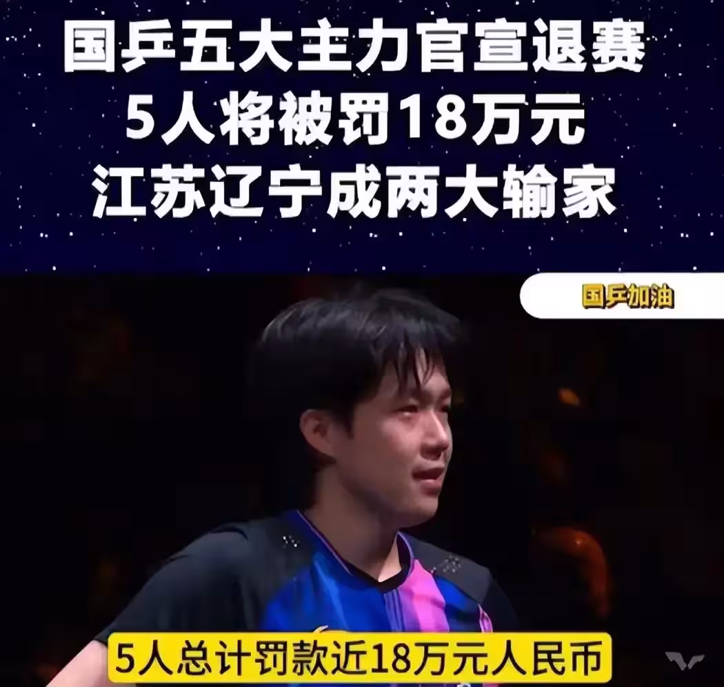 就在下午,傳來國乒樊振東、梁靖崑、退賽5人或遭罰款最新消息