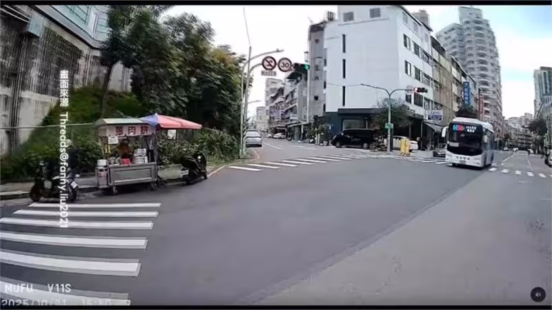 買蔥肉餅險遭撞飛! 公車闖紅燈還叭人 去年也曾撞倒騎士