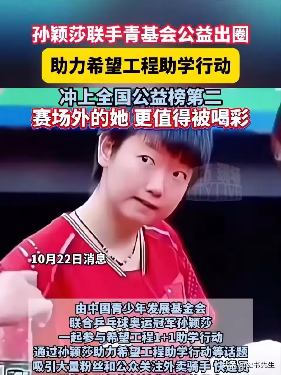 而她自己在生活中卻非常的節儉,不止一次有球迷感謝陪伴她訓練的何卓佳,感謝佳佳不僅當陪練,也會想著要去照顧孫穎莎的穿衣打扮。