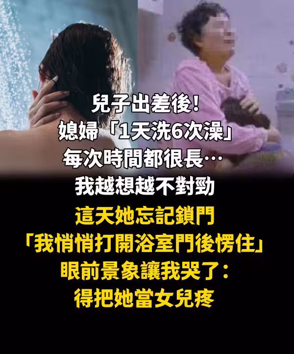 兒子出差後!媳婦「1天洗6次澡」每次時間都很長… 我越想越不對勁,這天她忘記鎖門「我悄悄打開浴室門後愣住」眼前景象讓我哭了:得把她當女兒疼