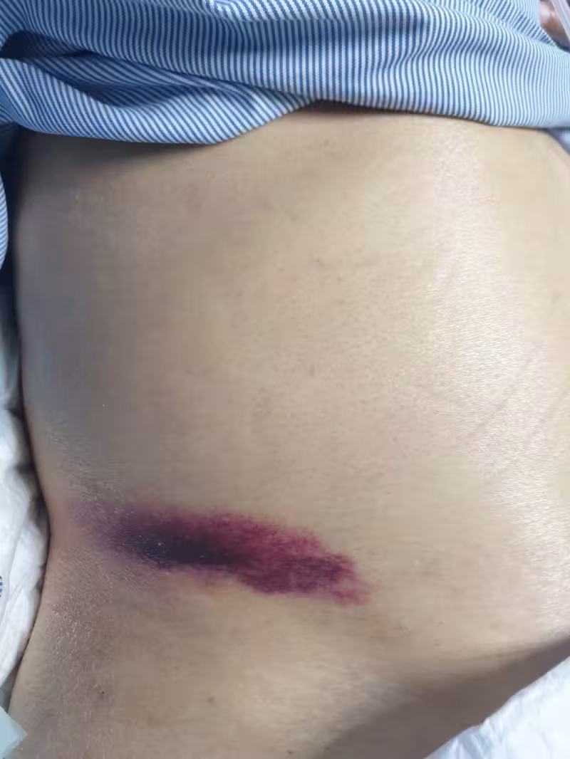 主治醫師在隔天查房時,意外發現病人右側腹股溝處出現長達15公分的瘀青,但病人並未遭受任何外力撞擊。