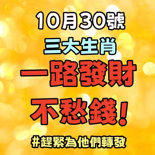10月30號,對於屬牛、屬馬和屬羊的朋友來說,這一天預示著財運將一路上漲,福氣滿滿,不愁錢花。