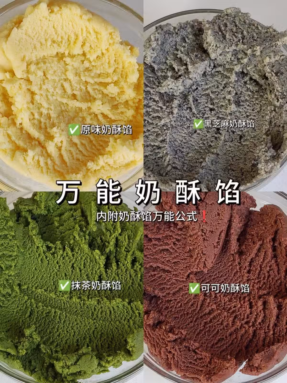 今天一次給大家分享4款奶酥餡,掌握了這個萬能奶酥配方公式❗️❗️❗️可以隨意變換各種口味的奶酥餡,配方的量可以做6-8個小麵包或者是1條450克的吐司夾餡。