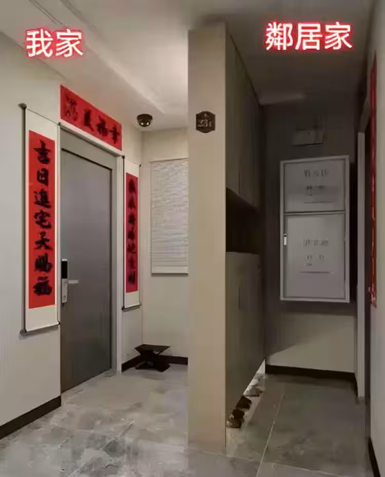 推文網友遇到棘手難題:與鄰居家門對門,但對方在門前中間位置砌了一面牆。