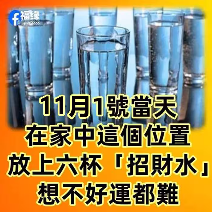 11月1號當天,在家中這個位置,放上六杯「招財水」想不好運都難