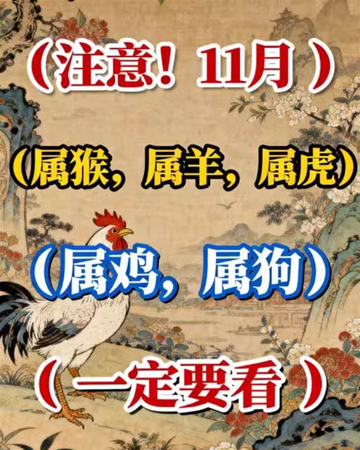 注意!11月(屬猴、屬羊、屬虎、屬雞、屬狗)一定要看!
