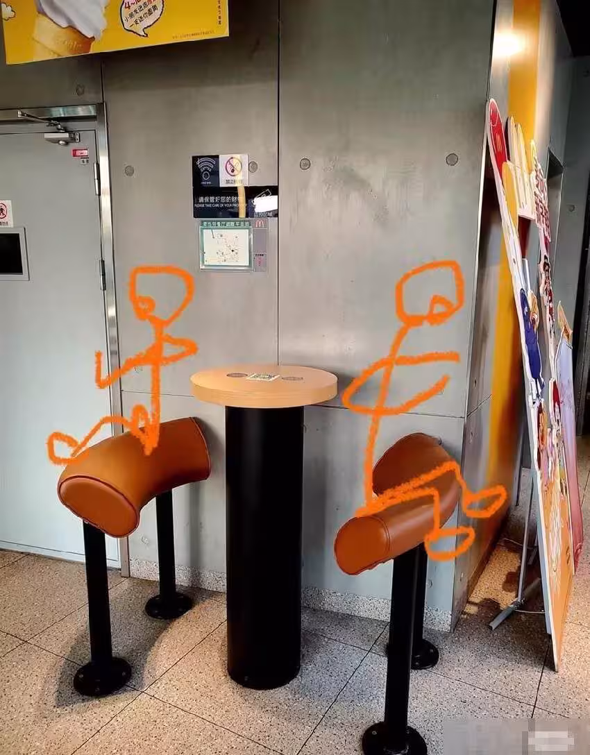 這把椅子引發的討論,實則揭示了現代公共空間管理中普遍採用的「防禦性設計」理念。