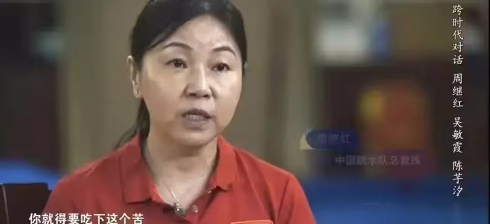 作為中國跳水的靈魂人物,周繼紅的眼光從未局限於運動員的技術短板。她對陳芋汐的評價字字千金:「能吃苦、有韌勁,而且特別沉穩,從不情緒化。」 這番讚譽看似是對弟子的肯定,實則是對一種精神特質的精準畫像,而這恰恰是周繼紅年輕時自身性格的完美復刻。在她看來,技術可以通過日復一日的訓練打磨精進,但刻在骨子裡的堅韌品格與臨危不亂的冷靜心態,卻是難以後天培養的核心素養,這才是中國跳水隊屹立不倒的精神根基。