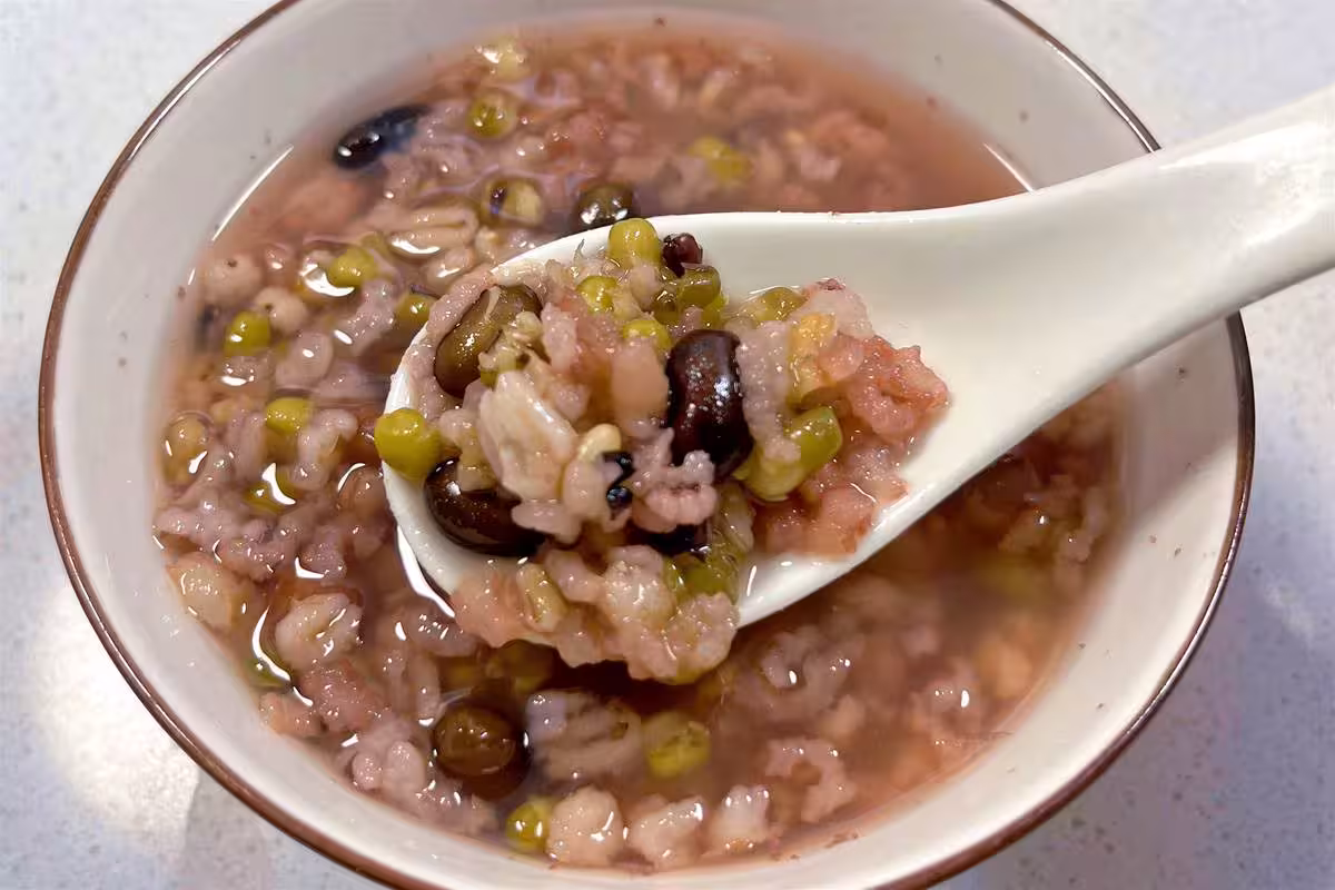 2. 同樣,紅小豆、黑豆、綠豆和薏米最好提前浸泡1-2小時。大米淘洗乾淨即可。