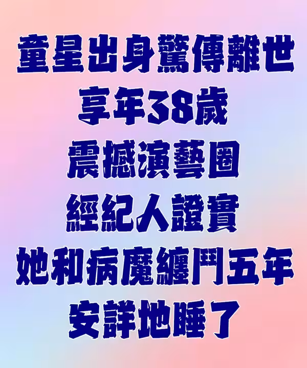 童星出身!38歲星二代「驚傳離世」震撼演藝圈 經紀人證實「她和病魔纏鬥五年」:安詳地睡了