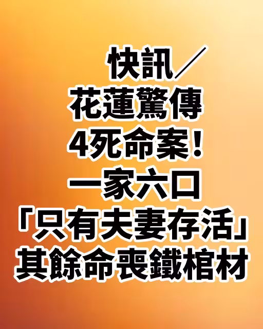 快訊/花蓮驚傳4死命案!一家六口「只有夫妻存活」其餘命喪鐵棺材