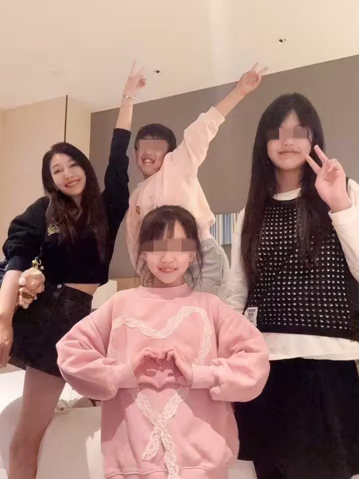 最後,她也上傳了全家人抵達飯店的開心合照。
