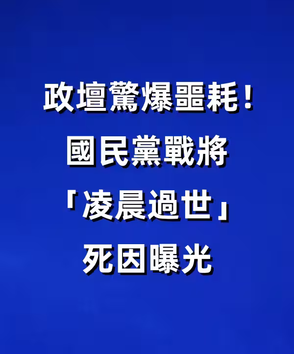 快訊/政壇驚爆噩耗!國民黨戰將 「凌晨過世」 死因曝光