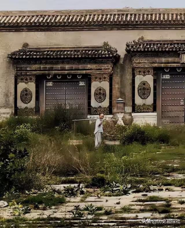 1901年,日本人拍攝的紫禁城,滿目淒涼,太監站在雜草中發獃