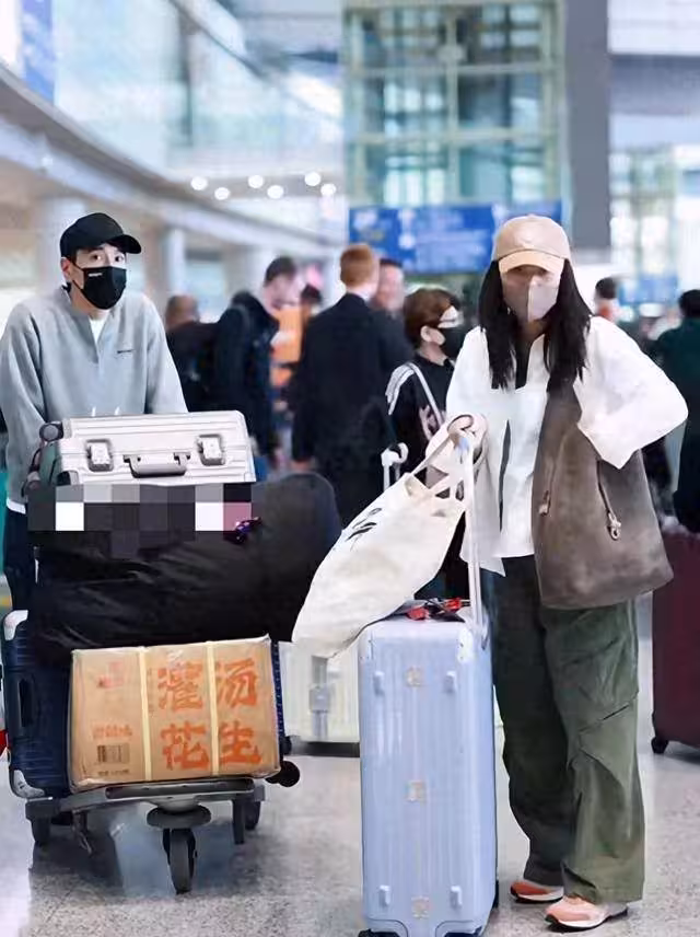 高圓圓穿得跟普通遊客一樣,帆布包往行李箱上一擱,低頭滑手機那股子鬆弛勁,活脫脫隔壁小區下樓倒垃圾的漂亮姐姐。