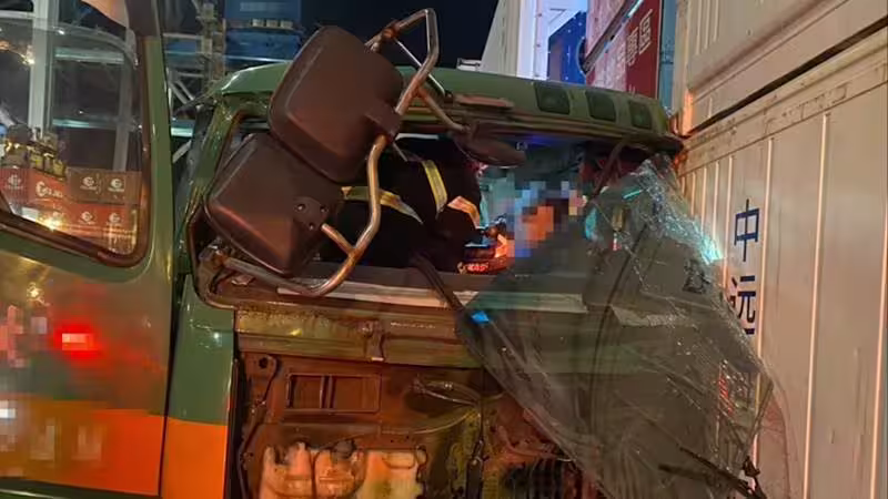 今(15)日傍晚,基隆港東岸碼頭的作業區域發生一起貨櫃車自撞意外。一輛解櫃車在東 9 碼頭後線櫃場作業時,不明原因失控撞擊貨櫃堆區,導致車頭嚴重受損。男性駕駛的腿部被變形的車體緊緊卡住而受困,所幸在港務消防隊與基隆市消防局的聯合救援下,駕駛最終成功脫困並送醫治療。