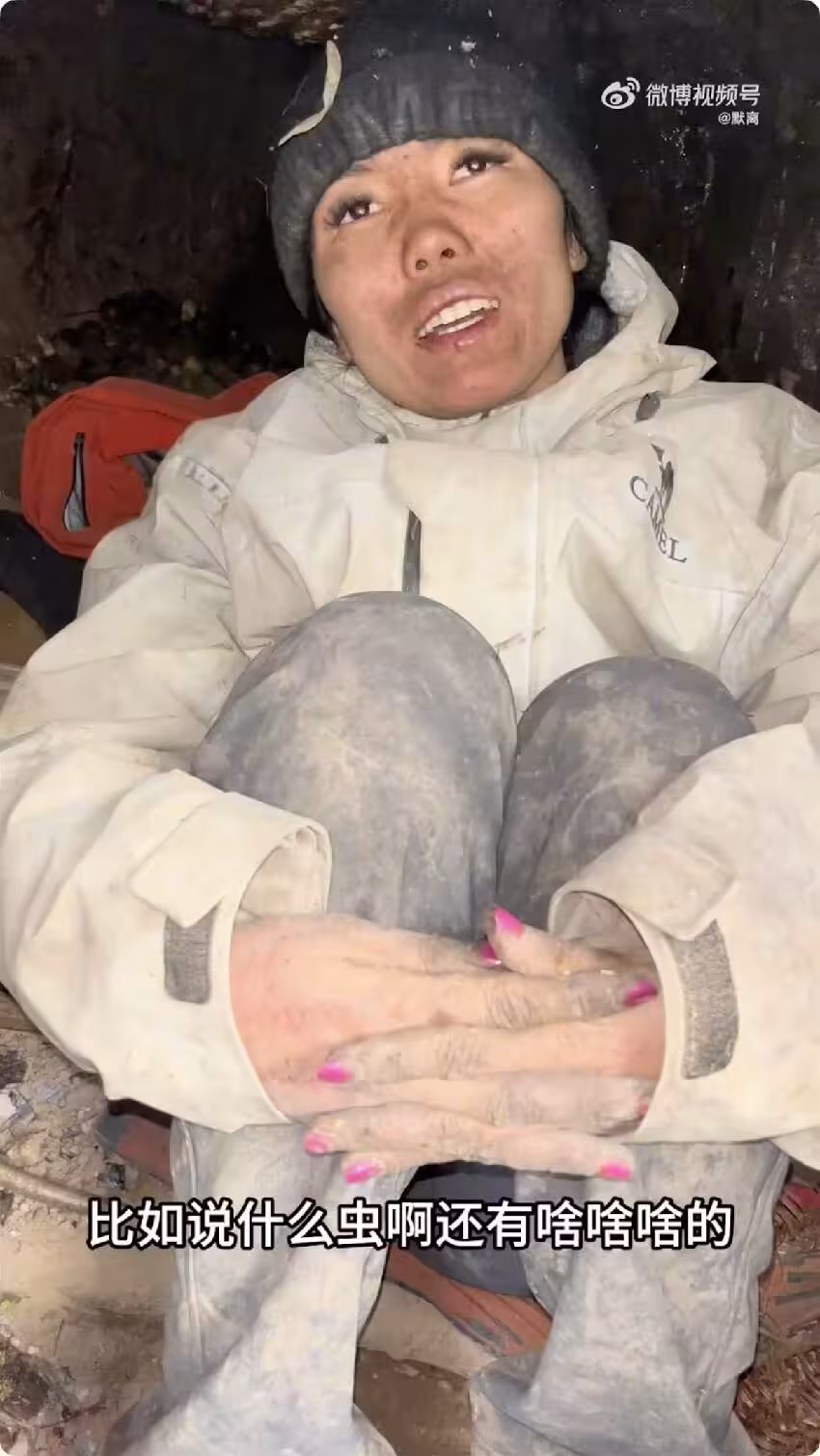 「冷美人」在山中採摘野果、野菜充飢。(影片截圖)