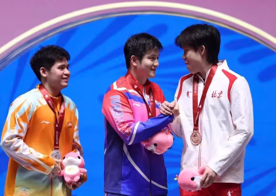 新華社記者問樊振東:「已是超級全滿貫,你的下一個目標是什麼?」樊振東回答道:「這個問題,每個人都會去思考。有時候大家會習慣性把目標定得很大或很遠,我認為,不管有多大或多高的目標,都需要每一天、每一次的刻苦訓練,去積累經驗、去戰勝困難,才有可能實現目標。我的全運會征程還沒結束,作為自己來說,希望在團體賽里好好表現,幫助團隊走得更遠。」