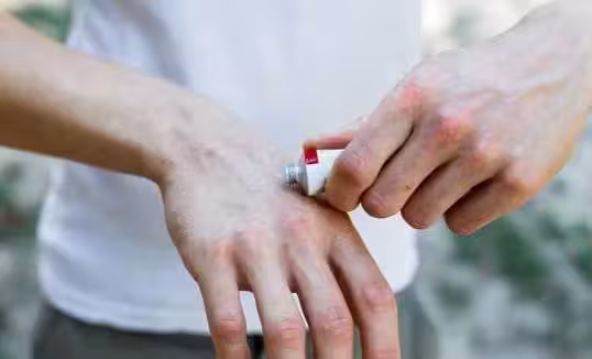 有眼尖網友放大照片後發現:女子裸露的手背上布滿可怕的水泡和紅斑,傘骨上貼著小小的醫療警示貼紙。