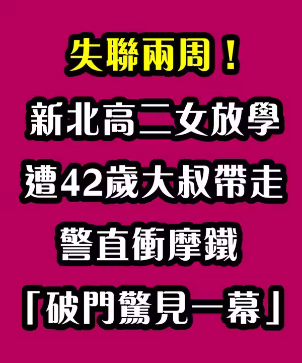 失聯兩周!新北高二女放學「遭42歲大叔帶走」...警直衝摩鐵「破門驚見一幕」!