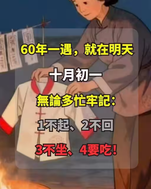 60年一遇,就在明天農曆十月初一,無論多忙牢記:1不起、2不回、3不坐、4要吃!