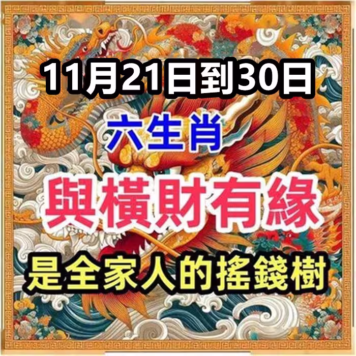 11月21日到30日與橫財有緣的六生肖,是全家人的搖錢樹