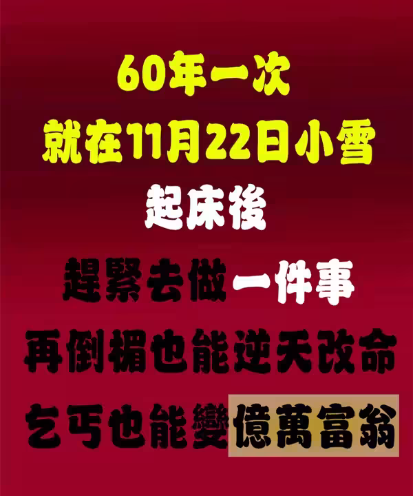 60年一次,就在11月22日「小雪」 起床後趕緊去做一件事,再倒楣也能逆天改命! 乞丐也能變億萬富翁