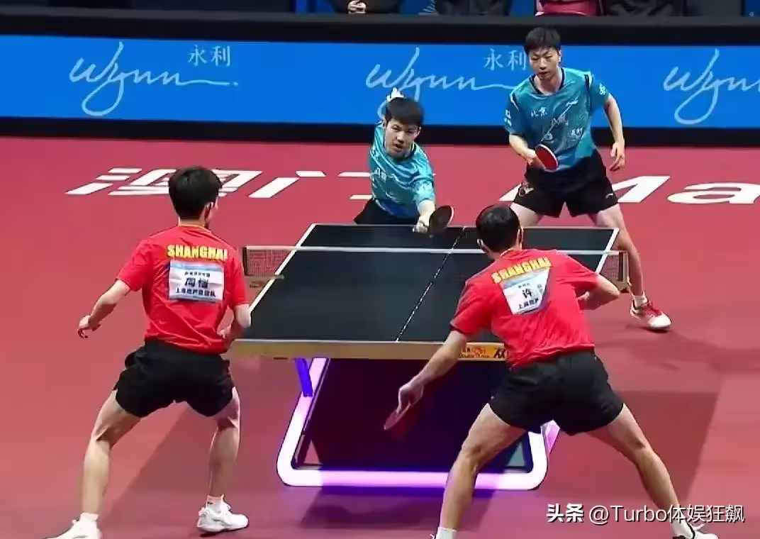 隨後的比賽進入北京隊節奏,馬龍和經驗尚淺但衝勁十足的黃友政配合默契,以11-4和11-7連勝兩局,最終以3-1的大比分擊敗許昕和周愷組合。