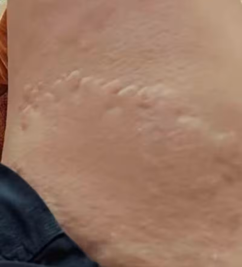 有沒有同款經歷?「時,評論區秒變急診室:網友齊聲指認蕁麻疹(俗稱風疙瘩),警告此為免疫力下降信號,強烈要求立即就醫皮膚科。