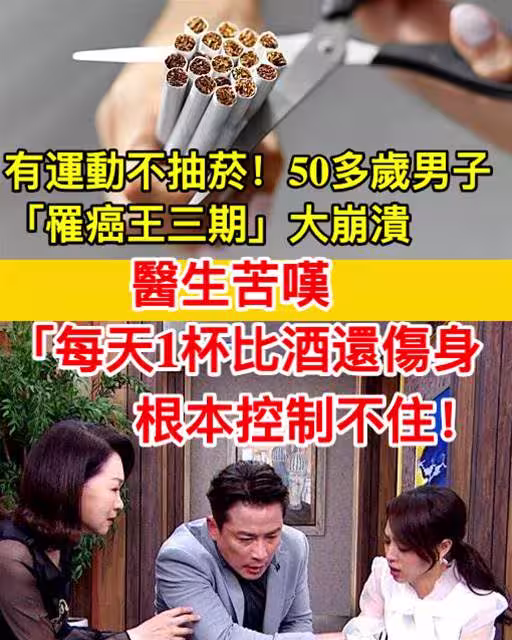 有運動不抽煙!50多歲男子「罹癌王三期」, 大崩潰 醫生苦嘆「每天1杯比酒還傷身」:根本控制不住