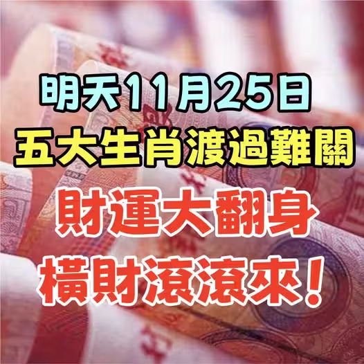 明天11月25日,五大生肖渡過難關,財運大翻身,橫財滾滾來~