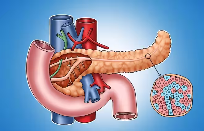 不妨來看看胰腺的位置,在我們身體上腹部的深處,有一個不起眼的器官,就是胰腺。