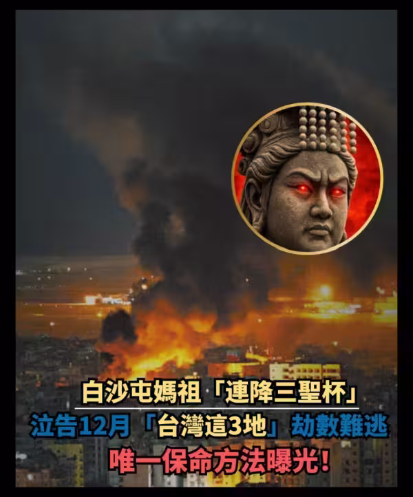 大家好,今天我們來聊聊一件關乎台灣命運的大事,那就是白沙屯媽祖「連降三聖杯」,直指12月台灣三個地方將有劫數,令人不由得心生畏懼。