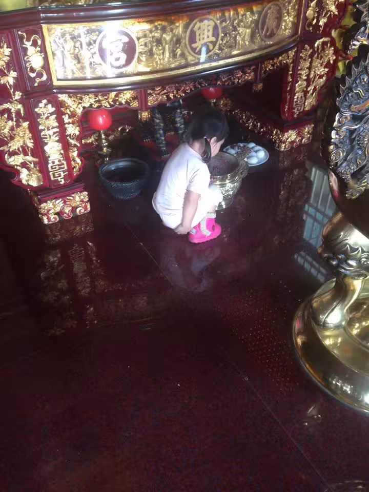 不過台南卻有一位媽媽透露,日前自己帶著3歲的女兒到宮廟裡拜拜,結果拜到虎爺公時,女兒竟突然在金爐前蹲了下來,還露出一臉做錯事的模樣,讓她心裡一緊,當場腿軟跪下來謝罪,直呼:「不知者無罪!」