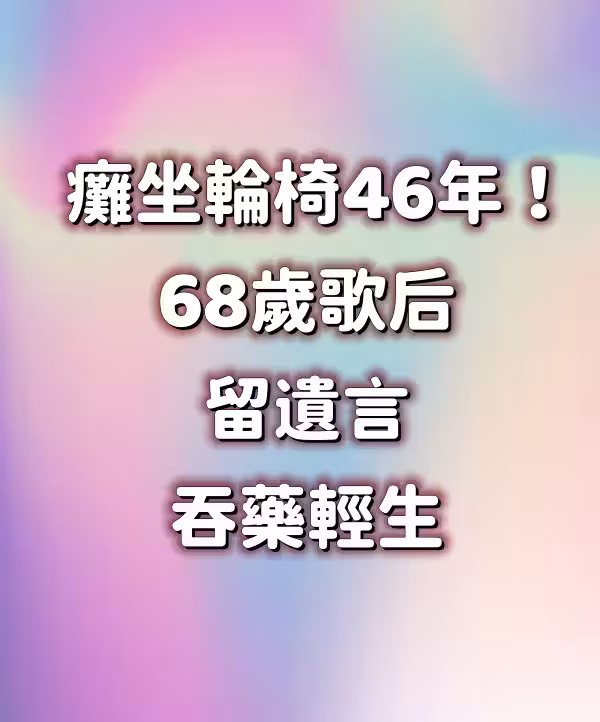 癱坐輪椅46年!68歲歌后「留遺言吞藥輕.生」