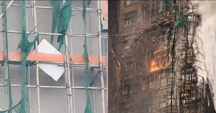 竹製鷹架因價格低、韌性高、重量輕,在香港等地具有成本優勢,而為了避免粉塵與保護工人安全,會在鷹架外圍上尼龍塑膠防護網,但該材質不僅「耐燒」,遇上大量可燃物還會導致火勢加劇。
